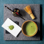 The tea used to make matcha, which is made by grinding tencha in a mortar and turning it into powder.